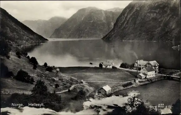 Ak Hellesylt Norwegen, Häuser am Wasser