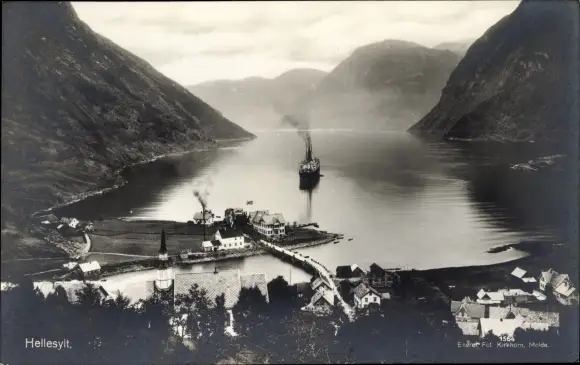 Ak Hellesylt Norwegen, Panorama, Dampfer