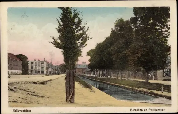 Ak Hellevoetsluis Südholland, Barakken en Postkantoor