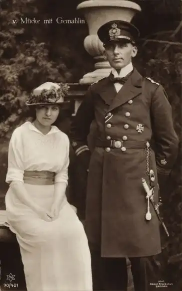 Ak Hellmuth von Mücke, Kommandant SMS Emden, Portrait mit Gemahlin, Novitas 70/401