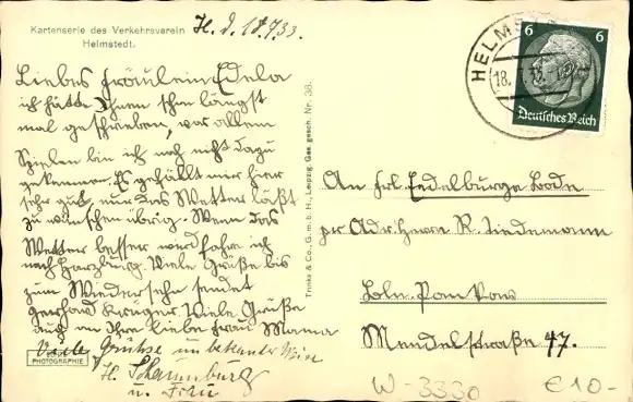 Zustand, siehe Scan, gelaufen, 1933 - ca 9 cm X 14 cm