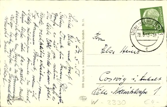Zustand, siehe Scan, gelaufen, 1955 - ca 9 cm X 14 cm