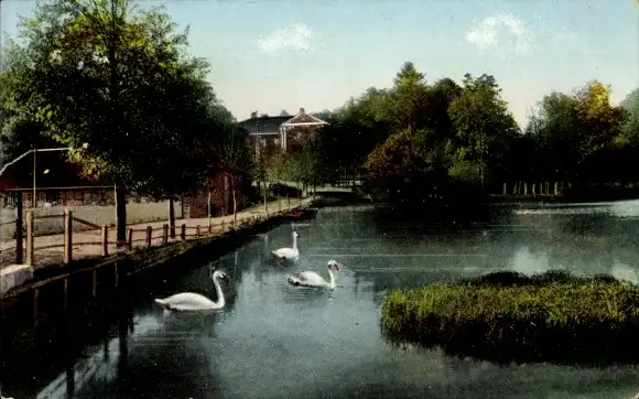 Ak Helmstorf bei Lütjenburg in Holstein, Teilansicht, Schwäne