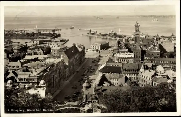 Ak Helsingborg Schweden, Utsikt fran Kärnan, Blick zum Hafen