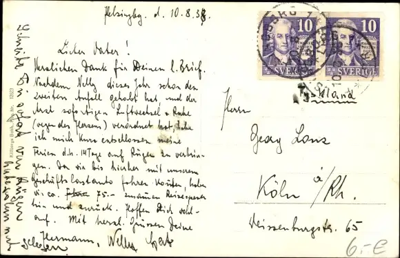 Zustand, siehe Scan, gelaufen, 1938 - ca 14 cm X 9 cm