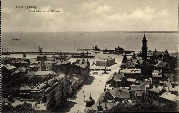 Ak Helsingborg Schweden, Utsikt fran tornet Kärnan, Stadtansicht
