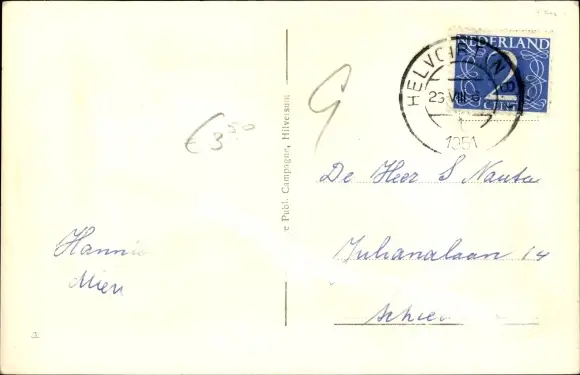 Zustand, siehe Scan, gelaufen, 1951 - ca 14 cm X 9 cm