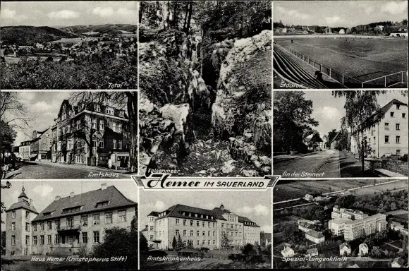 Ak Hemer im Sauerland, An der Steinert, Felsenmeer, Panorama, Satdion, Haus Hemer