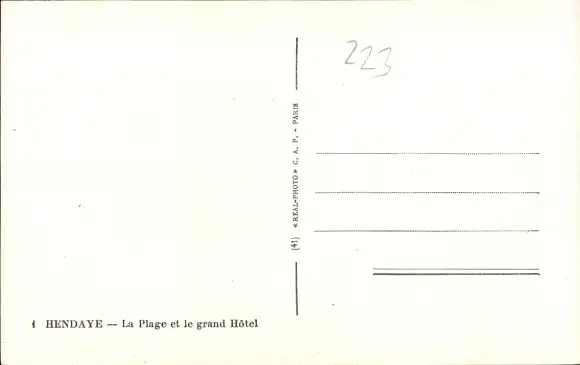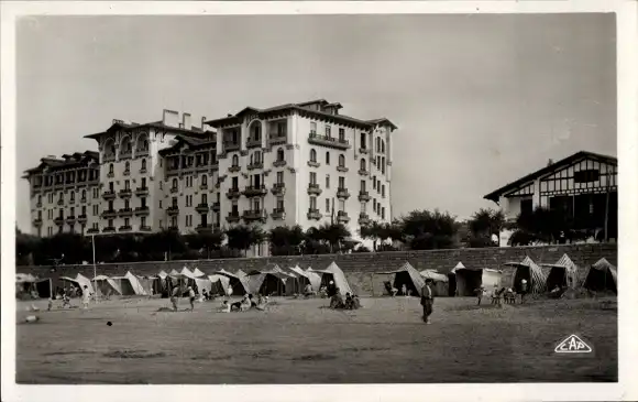 Ak Hendaye Pyrénées-Atlantiques, Strand und das Grand Hotel