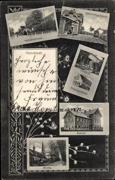 Ak Hennstedt in Dithmarschen, Pastorat, Mühlenstraße, Kirche, Schule