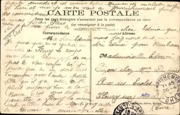 gelaufen 1910, Eckknick links unten, sonst guter Zustand