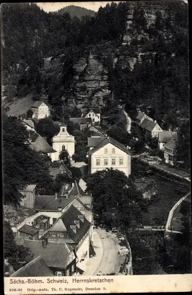 Ak Hřensko Herrnskretschen Elbe Region Aussig, Panorama