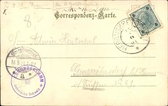 Zustand, siehe Scan, gelaufen, 1901 - ca 9 cm X 14 cm