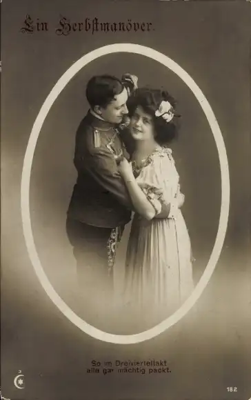 Ak Herbstmanöver, Tanzendes Liebespaar, Mann in Uniform