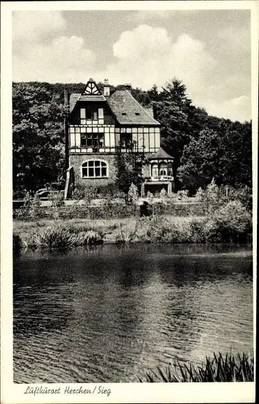 Ak Herchen Windeck an der Sieg, Hotel Löwenburg, Blick über das Wasser