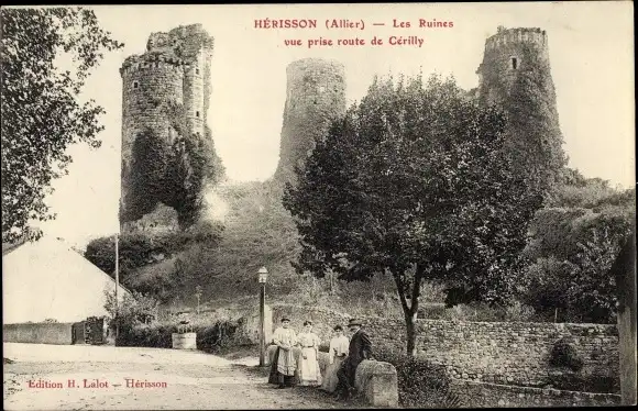 Ak Hérisson Allier, ruines, vue prise route de Cérilly