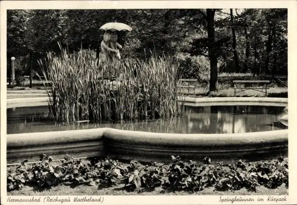 Ak Hermannsbad Westpreußen, Springbrunnen im Kurpark