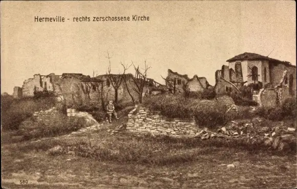 Ak Hermeville Meuse, Kriegszerstörung 1. WK, Zerstörte Kirche