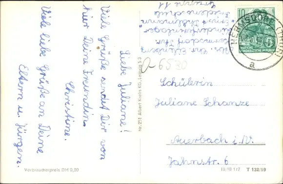 Zustand, siehe Scan, gelaufen, 1955 - ca 14 cm X 9 cm