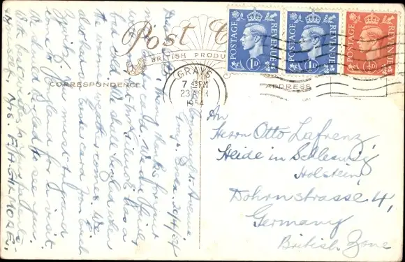 Zustand, siehe Scan, gelaufen, 1954 - ca 14 cm X 9 cm