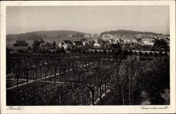 Ak Herrnhut in der Oberlausitz, Gesamtansicht, Friedhof