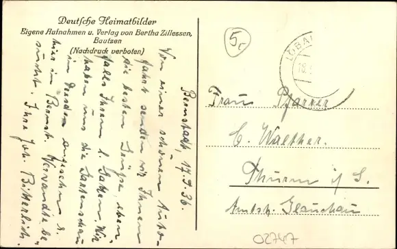 Zustand, siehe Scan, gelaufen, 1936 - ca 14 cm X 9 cm