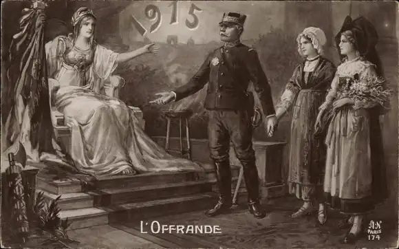 Ak Herrscherin mit Fahne, General, Elsässerin in Tracht, Propaganda