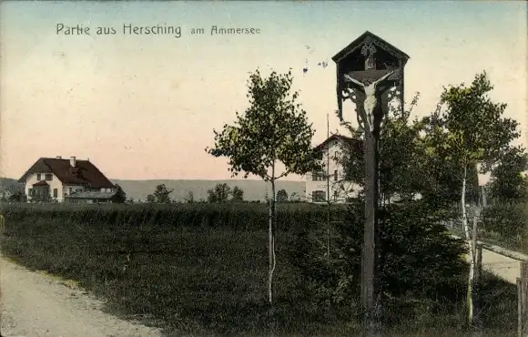 Ak Hersching am Ammersee, Teilansicht, Wegkreuz