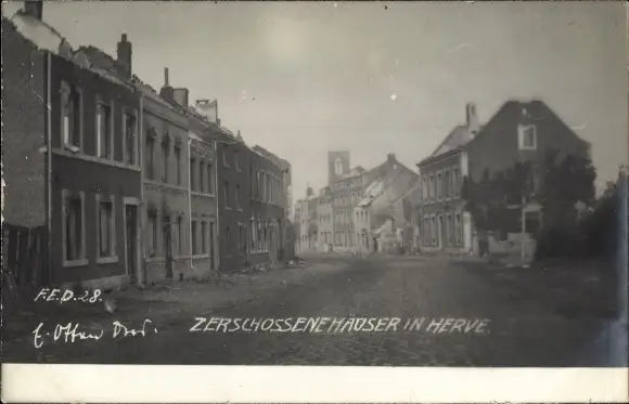 Ak Herve Wallonien Lüttich, Zerschossene Häuser, Kriegszerstörungen, I. WK