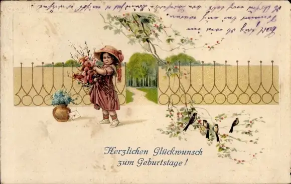 Ak Herzlichen Glückwunsch zum Geburtstag, Mädchen mit Blumen