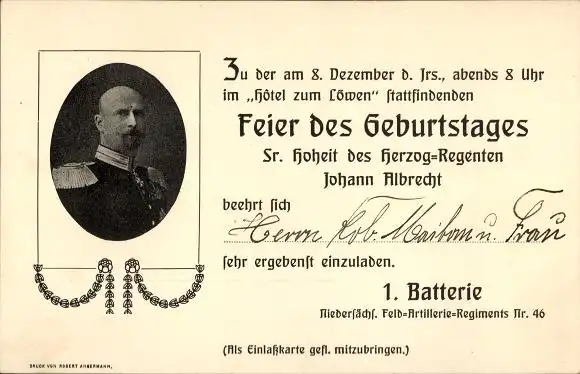 Ak Herzog-Regent Johann Albrecht, Portrait