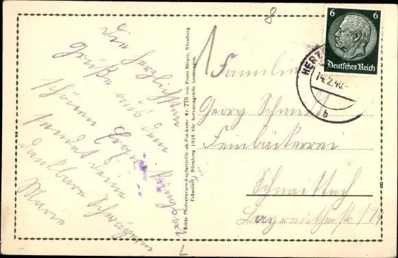 Zustand, siehe Scan, gelaufen, 1940 - ca 14 cm X 9 cm