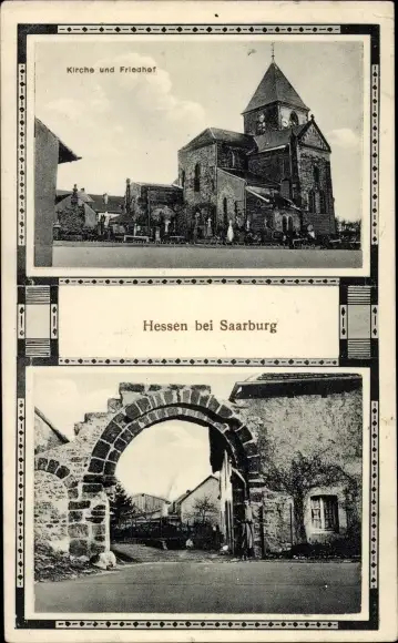 Ak Hesse Hessen in Lothringen Lothringen Moselle, Kirche, Friedhof