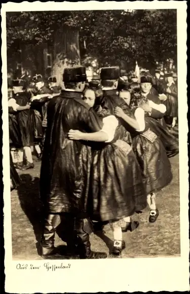 Ak Hessenland, Schwälmer Tanzpaare in Trachten