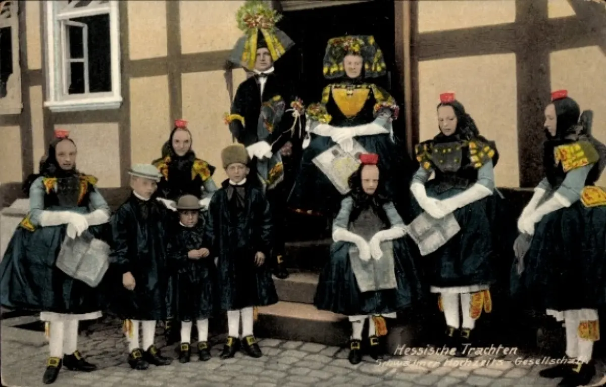 Ak Hessische Trachten, Mädchen in schwälmer Volkstrachten