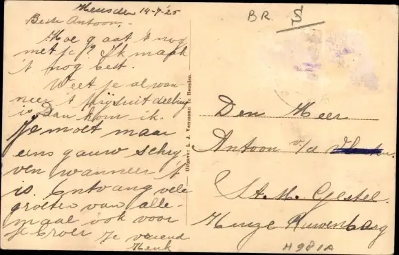 Zustand, siehe Scan, gelaufen, 1925 - ca 14 cm X 9 cm
