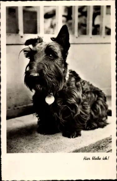 Ak Hier bleibe ich, Terrier, Hundeportrait