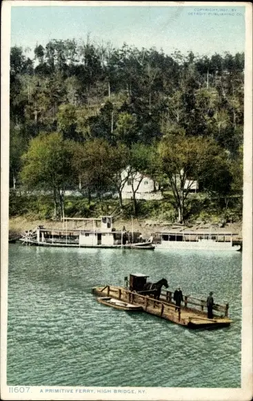 Ak High Bridge Kentucky USA, eine primitive Fähre