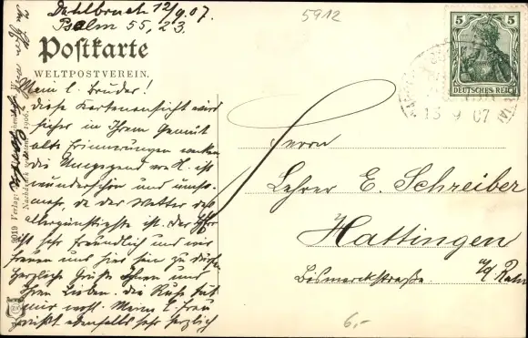 Zustand, siehe Scan, gelaufen, 1907 - ca 14 cm X 9 cm