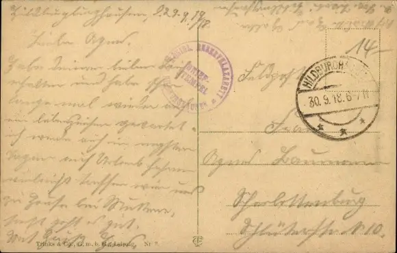 Zustand, siehe Scan, gelaufen, 1918 - ca 14 cm X 9 cm