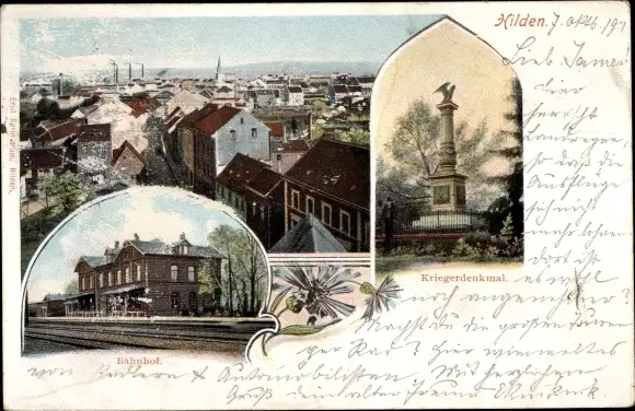 Ak Hilden im Rheinland, Bahnhof, Kriegerdenkmal