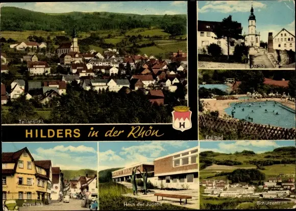 Ak Hilders in der Rhön, Gesamtansicht, Kirche, Freibad, Haus der Jugend, Schulzentrum