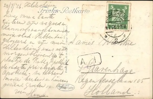 Zustand, siehe Scan, gelaufen, 1926 - ca 14 cm X 9 cm