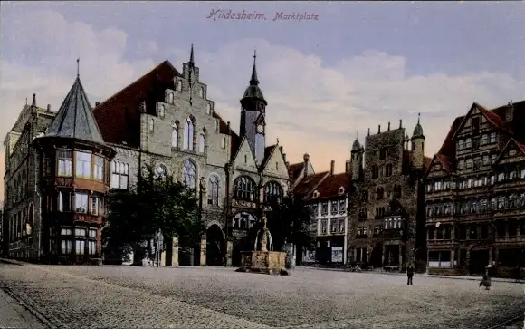 Ak Hildesheim a.d. Innerste, Rathaus und Brunnen am Marktplatz