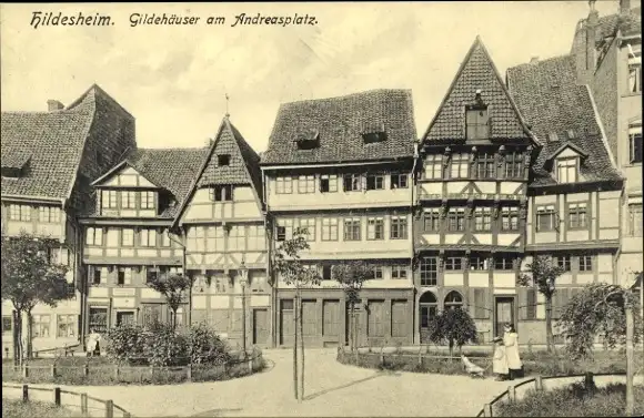 Ak Hildesheim in Niedersachsen, Gildehäuser am Andreasplatz