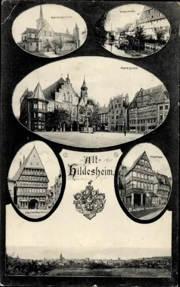 Ak Hildesheim in Niedersachsen, Godehardikirche, Knochenhauer Amtshaus