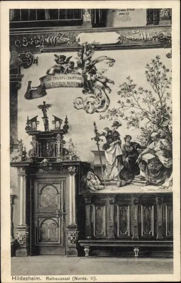 Ak Hildesheim in Niedersachsen, Rathaussaal, Wandgemälde