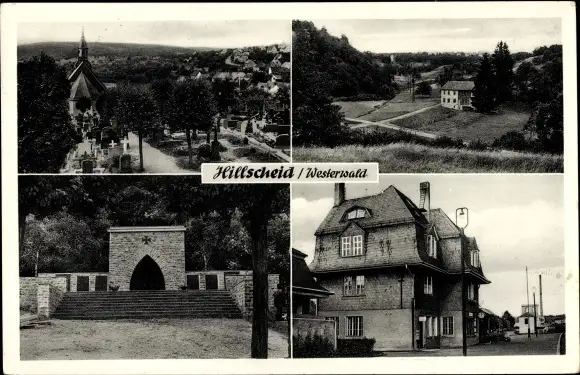 Ak Hillscheid im Westerwald, Teilansicht, Ehrenmal, Kirche