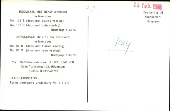 Ak Hilversum Nordholland, Reklame, Metaalwarenfabrieg G. Bredemeijer, versilbertes Geschirr