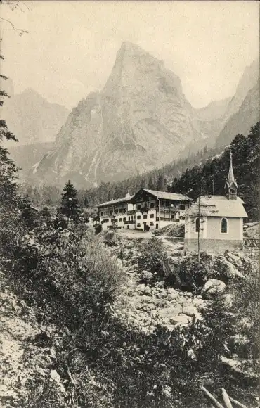 Ak Hinterbärenbad in Tirol, Teilansicht, Kirche, Bergspitze